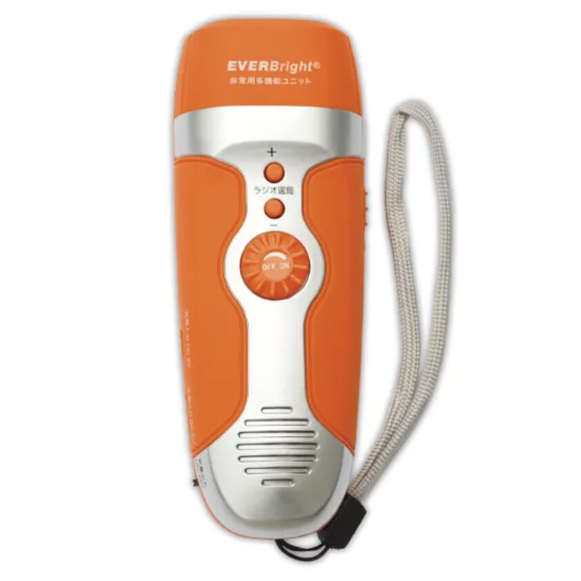 ワイドFM対応ラジオ、LEDライト、外部機器への充電機能といった災害時に不可欠な機能を集約したマルチユニット。