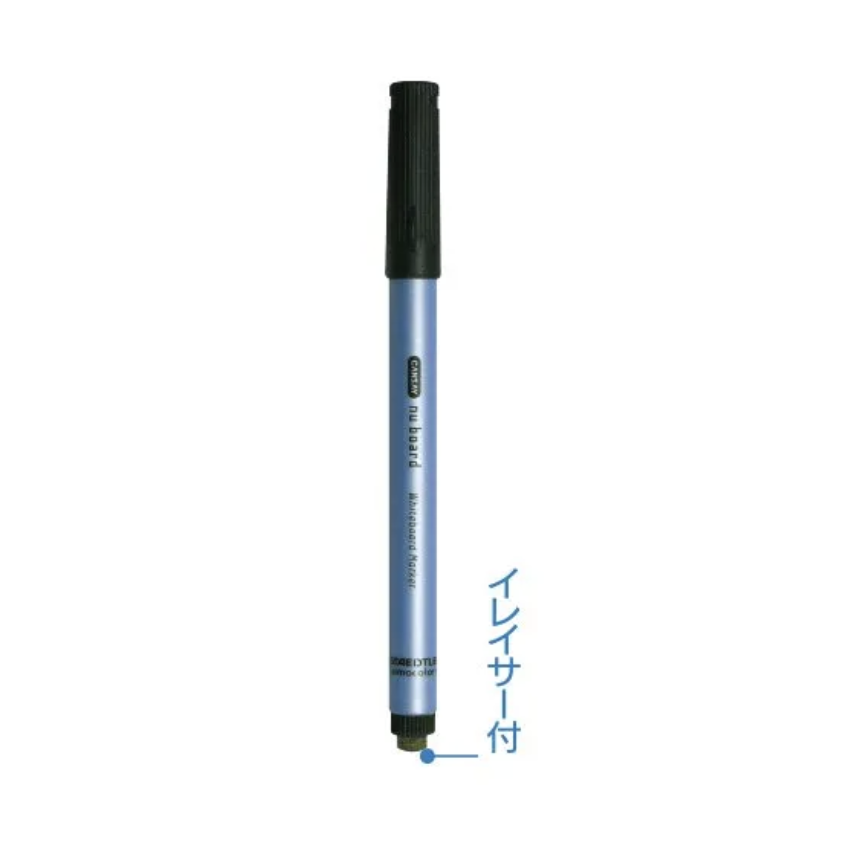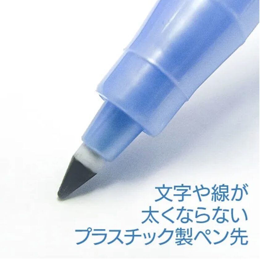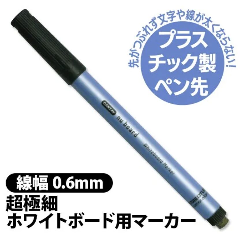 一般的なホワイトボード用マーカーと異なり、プラスチック製ペン先を採用することで文字や線が太くならないのが特徴です。