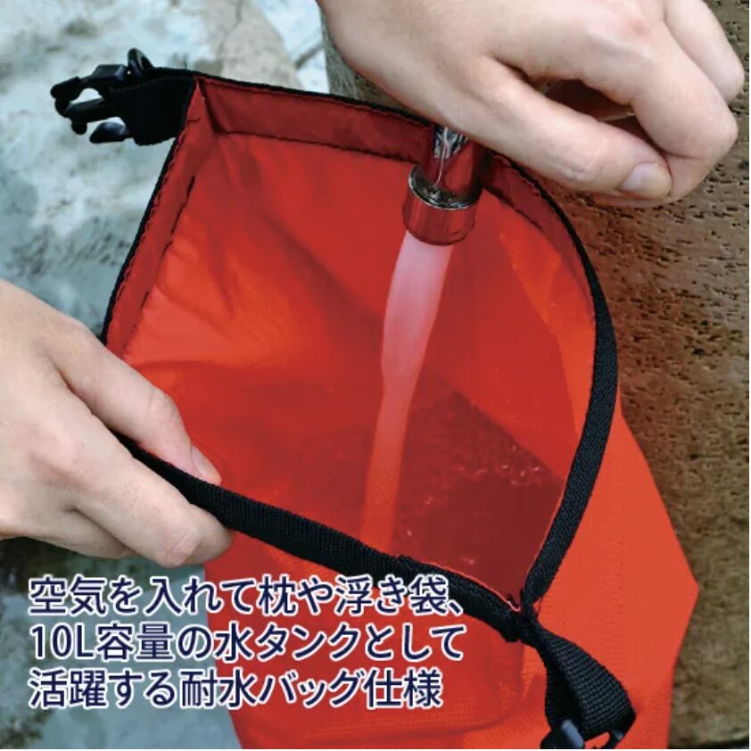 また、付属のキャリーバッグは、空気枕・簡易浮き袋・水タンク・携行品バッグなどに活用できます。【仕様】