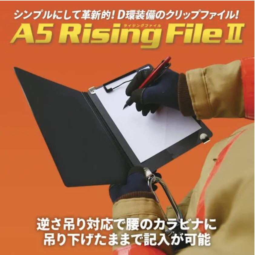 現場隊員が最も多用するクリップファイルに、現場活動用としてニーズの高い吊り下げ用金属D環を上下にあらかじめ装備。
